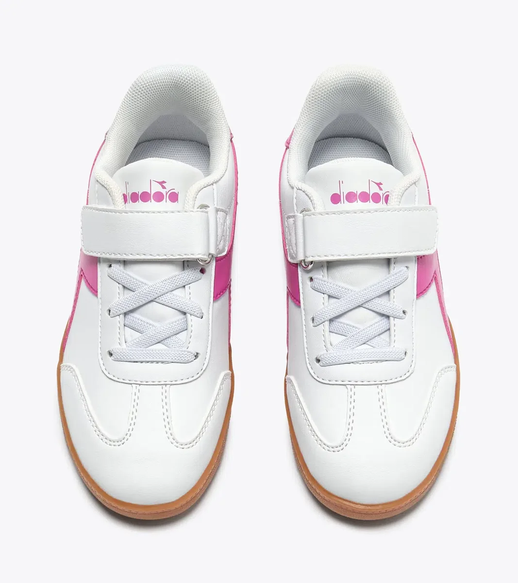 Terrassenstil, jetzt in Größen für die nächste Generation. Kyoto PS ist ein flacher Sneaker, der an das ikonische Court-Design der 80er Jahre angelehnt ist – gemacht für junge Fans des Sports und seiner Tradition. Seine unverwechselbare Gummisohle stammt direkt von den klassischen Handballschuhen von Diadora, ein erfolgreiches Detail seit den 1980er Jahren.