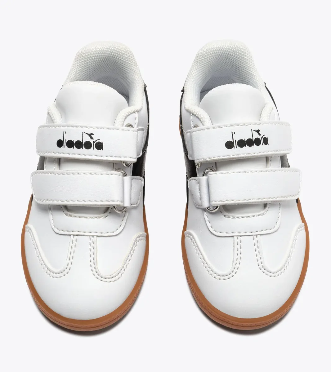 Kyoto TD bringt den Court-Stil der 80er Jahre zu den kleinsten Spielern. Dieser flache Sneaker greift klassische Diadora-Designs auf und wurde für Kinder entwickelt, die mit Sport und seinen Geschichten aufwachsen. Die unverwechselbare Gummisohle ist von unseren traditionellen Handballschuhen übernommen – ein erfolgreiches Detail seit den 80er Jahren.