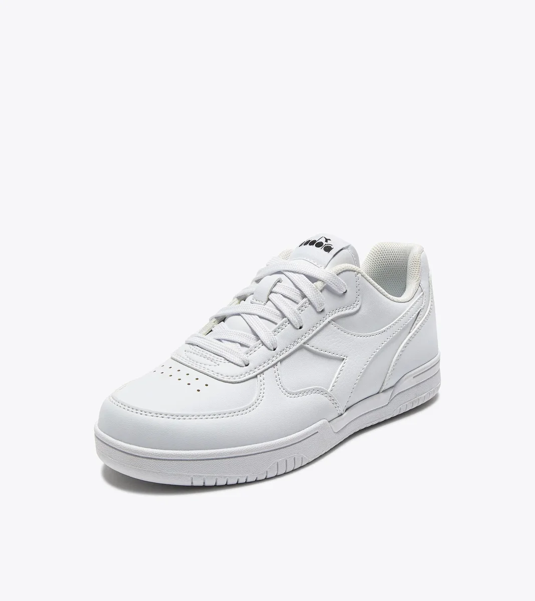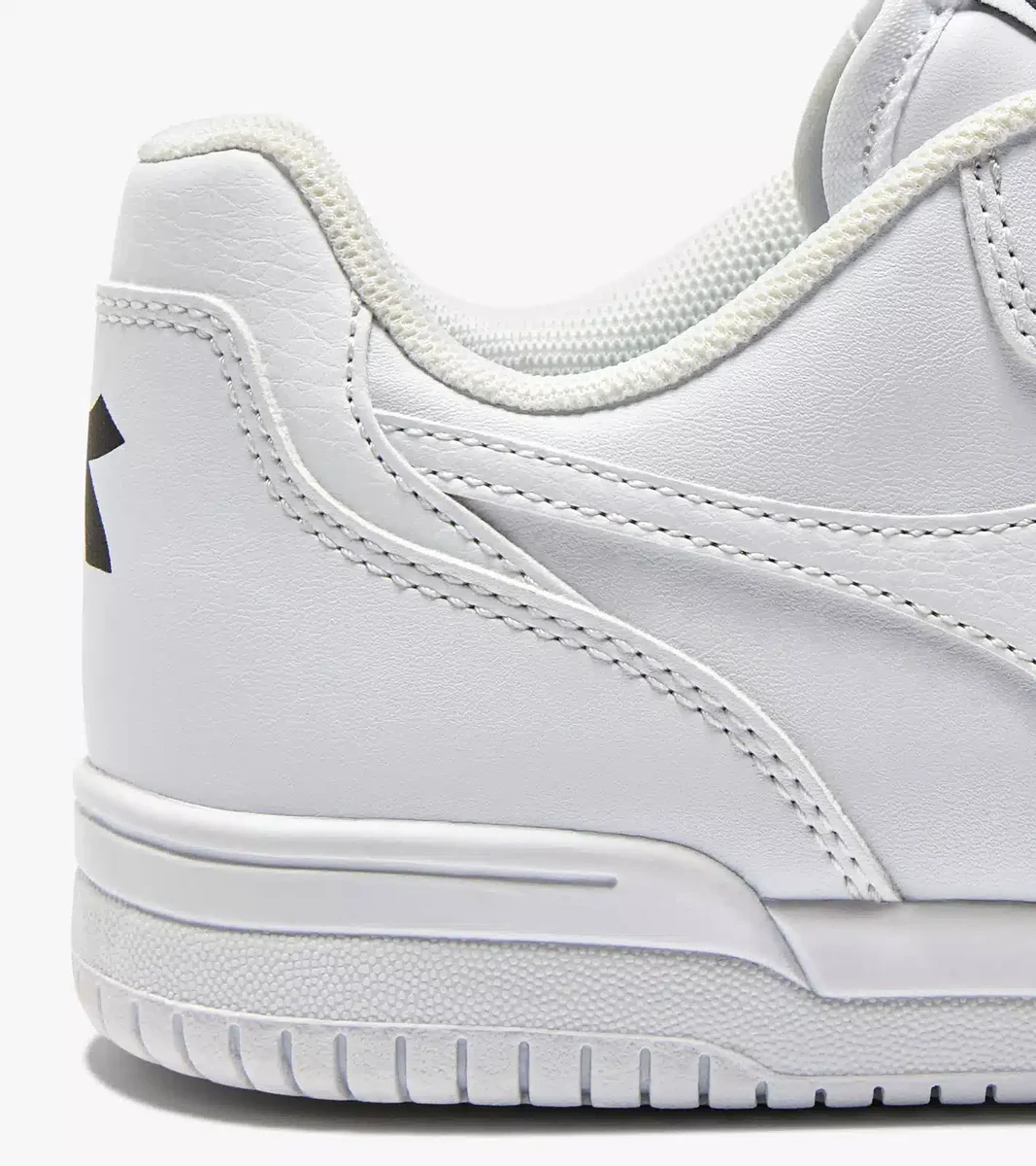 Kinder-Sneaker aus Kunstleder mit Reißverschluss. Das Modell Raptor Low GS verfügt wie die Erwachsenenversion über einen kontrastierenden Fregio und einen Stoffkragen.