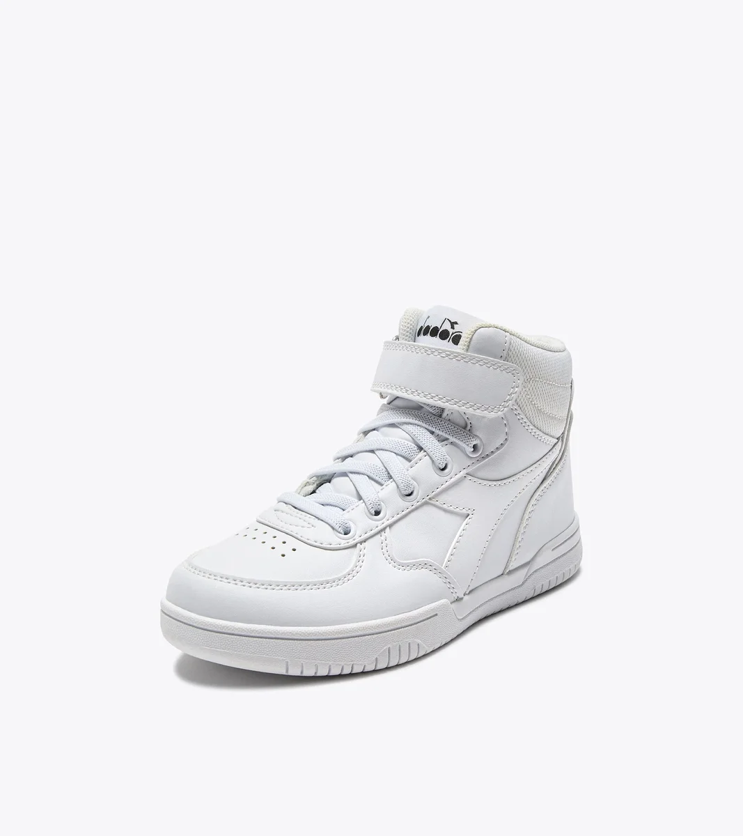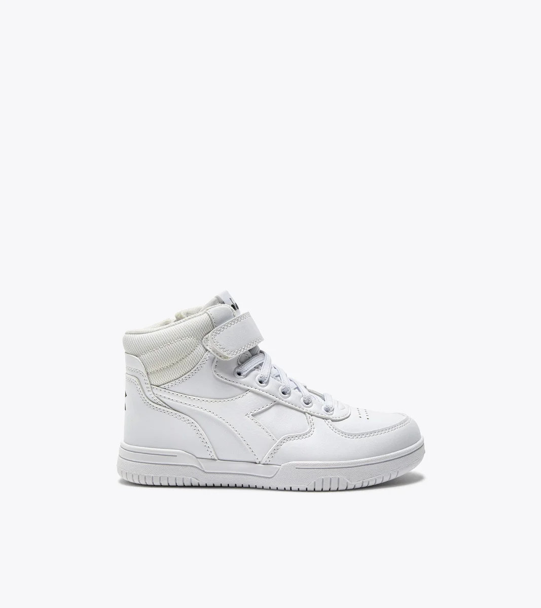 Kinder-Sneaker aus Kunstleder mit Reißverschluss. Das Modell Raptor MID PS verfügt wie die Erwachsenenversion über einen kontrastierenden Fregio und einen Stoffkragen.