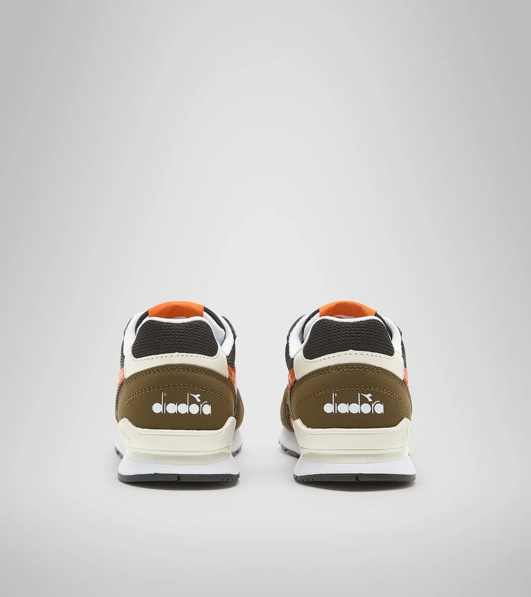 Kindertrainingsschuhe. Kontrastierendes Fregio und weißes Diadora 5ball-Logo. Zweifarbige Sohle. Der N.92 PS ist ein klassischer Retro-Laufschuh, der Komfort und Sportlichkeit vereint.