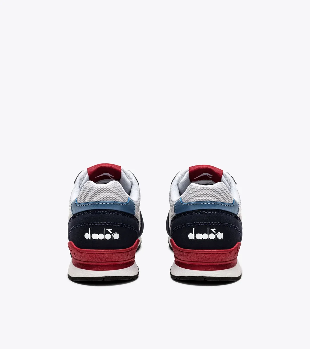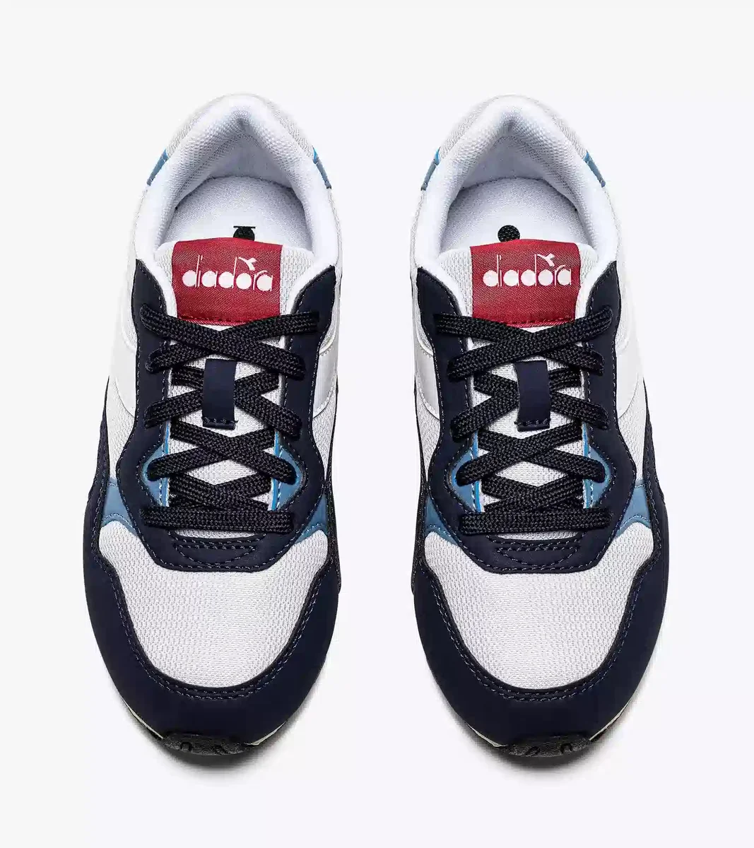 Kindertrainingsschuhe. Kontrastierendes Fregio und weißes Diadora 5ball-Logo. Zweifarbige Sohle. Der N.92 PS ist ein klassischer Retro-Laufschuh, der Komfort und Sportlichkeit vereint.