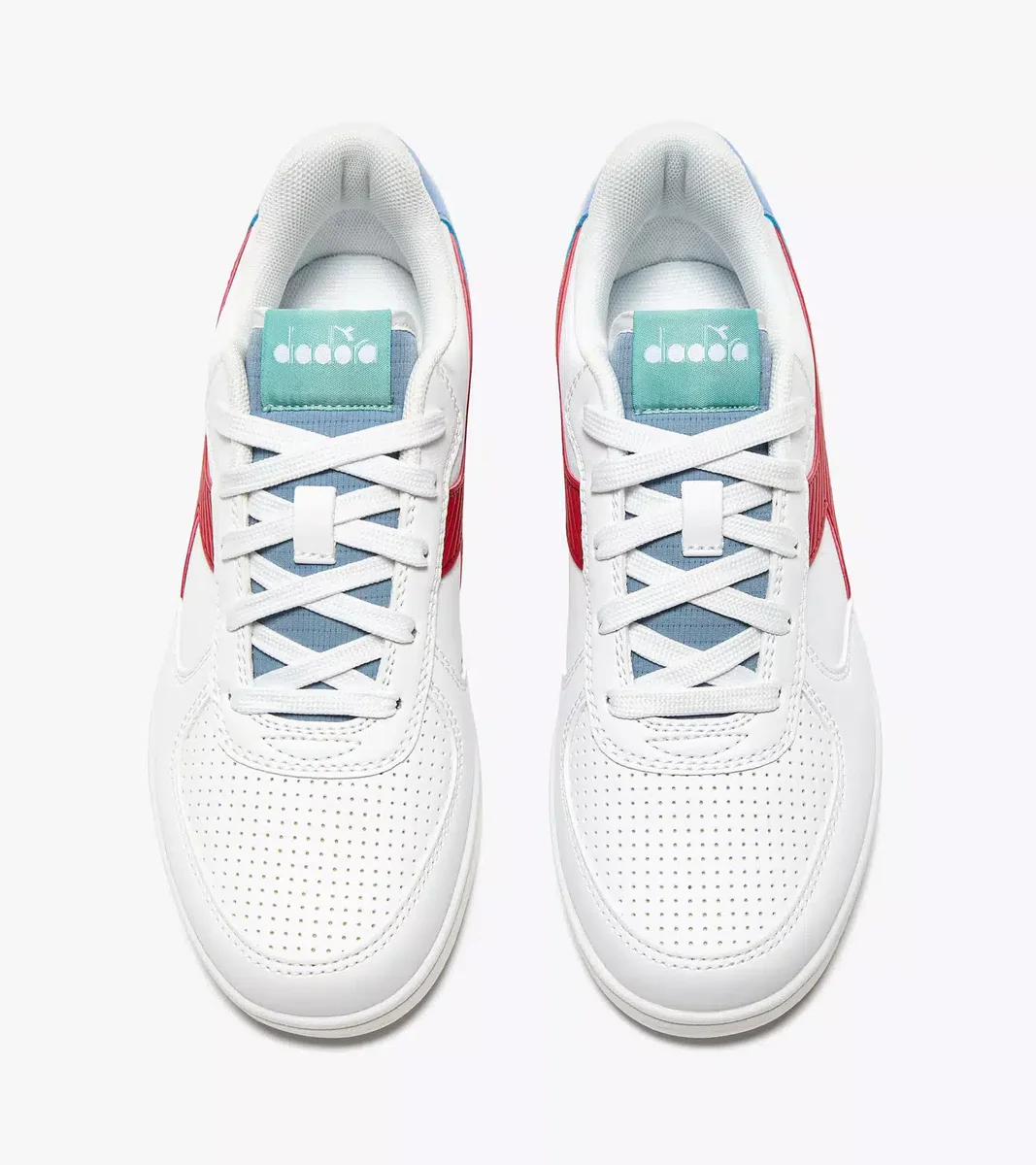 Mit seinem von Basketballschuhen der 80er Jahre inspirierten Look bringt der Raptor Low Stripe GS frischen Wind ins Spiel. Mit seinen strukturierten Kontrasten und dem auffälligen Logo-Streifen sind diese Sneaker die perfekte Wahl für junge Sneaker-Fans, die wissen, dass Details wichtig sind.