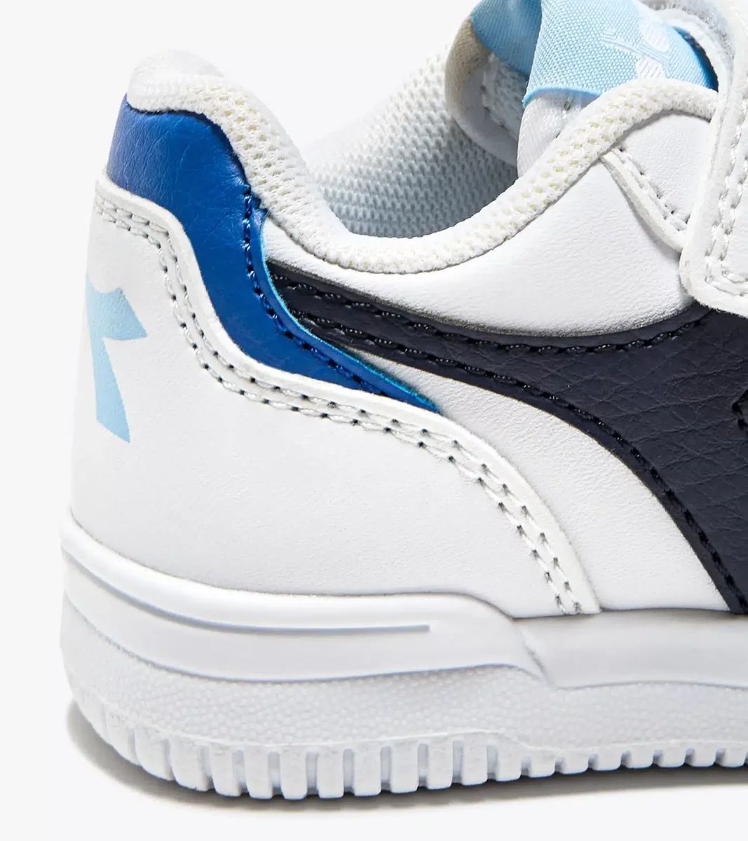 Kinder-Sneaker aus Kunstleder mit Reißverschluss. Der Raptor Low TD hat genau wie die Erwachsenenversion einen kontrastierenden Fregio- und Stoffkragen.