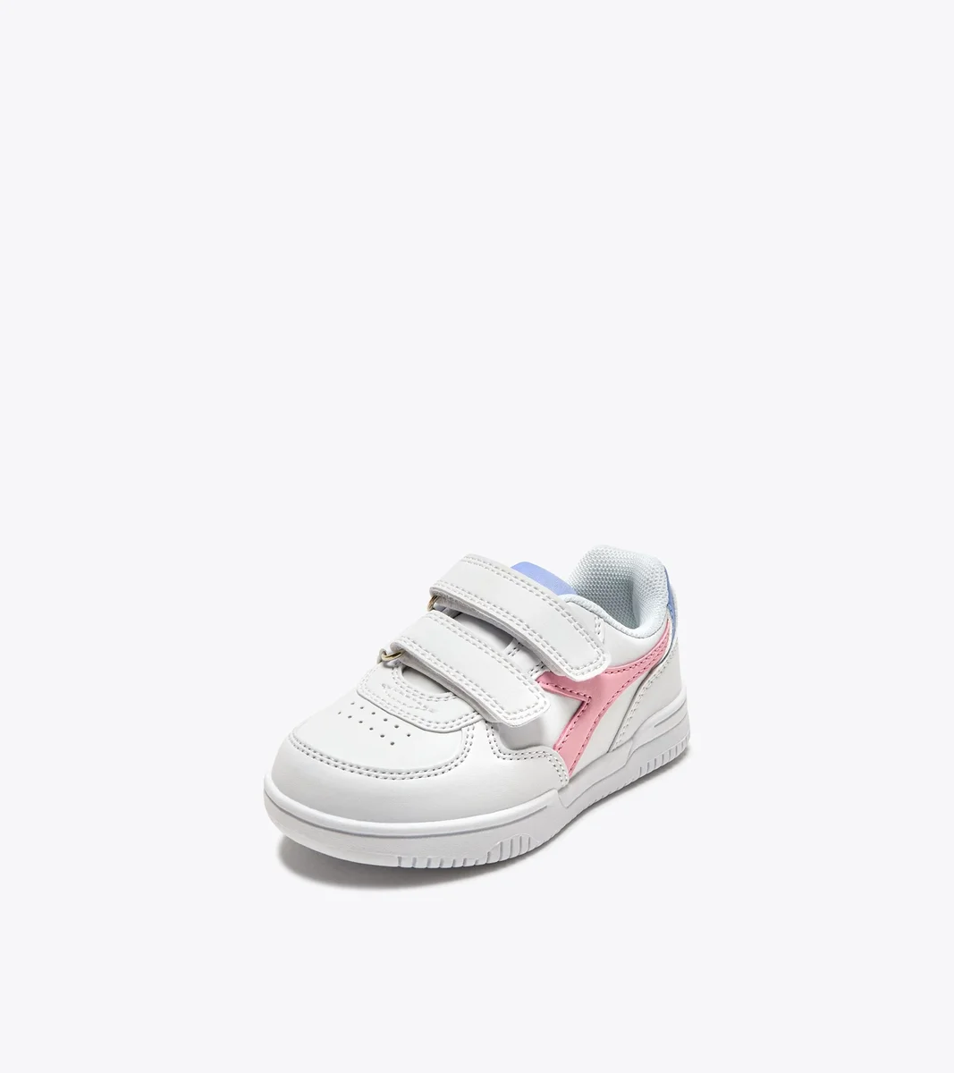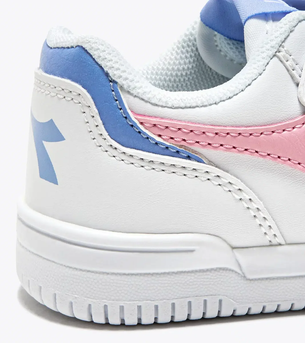 Kinder-Sneaker aus Kunstleder mit Reißverschluss. Der Raptor Low TD hat genau wie die Erwachsenenversion einen kontrastierenden Fregio- und Stoffkragen.