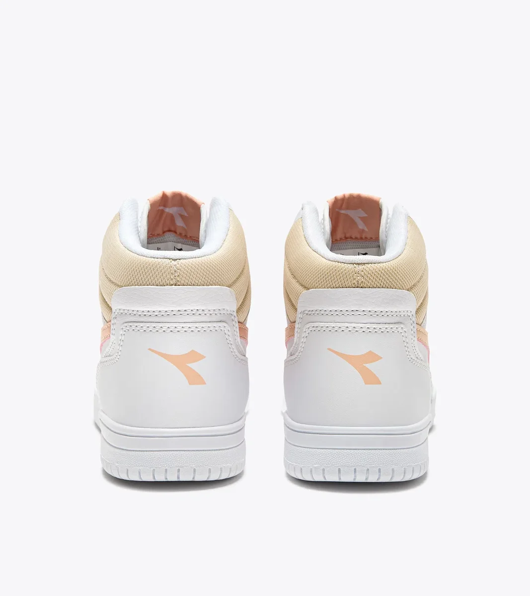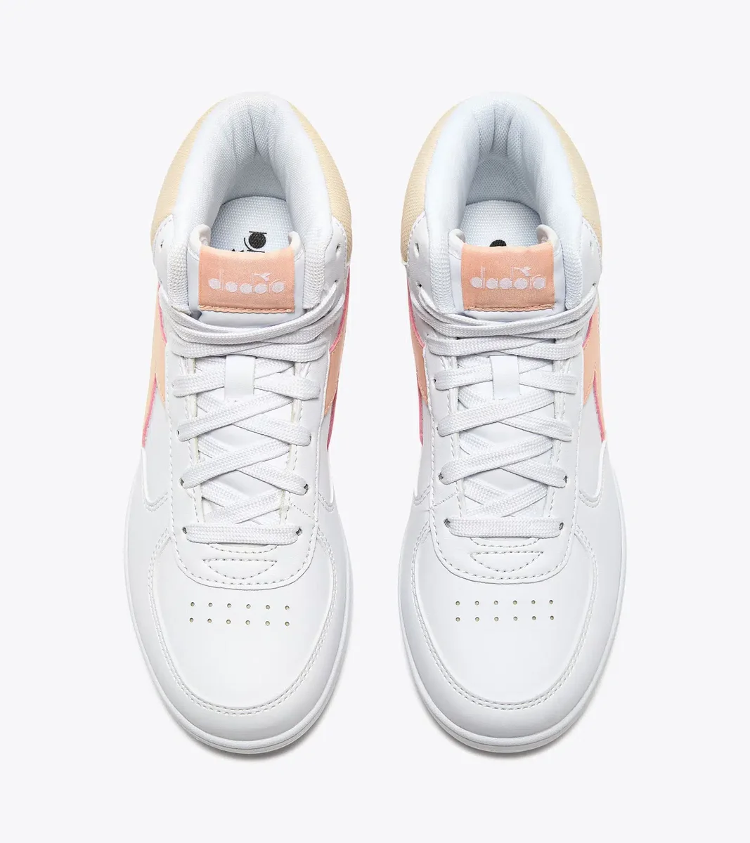 Kinder-Sneaker aus Kunstleder mit Reißverschluss. Das Modell Raptor MID GS verfügt wie die Erwachsenenversion über einen kontrastierenden Fregio- und Stoffkragen.